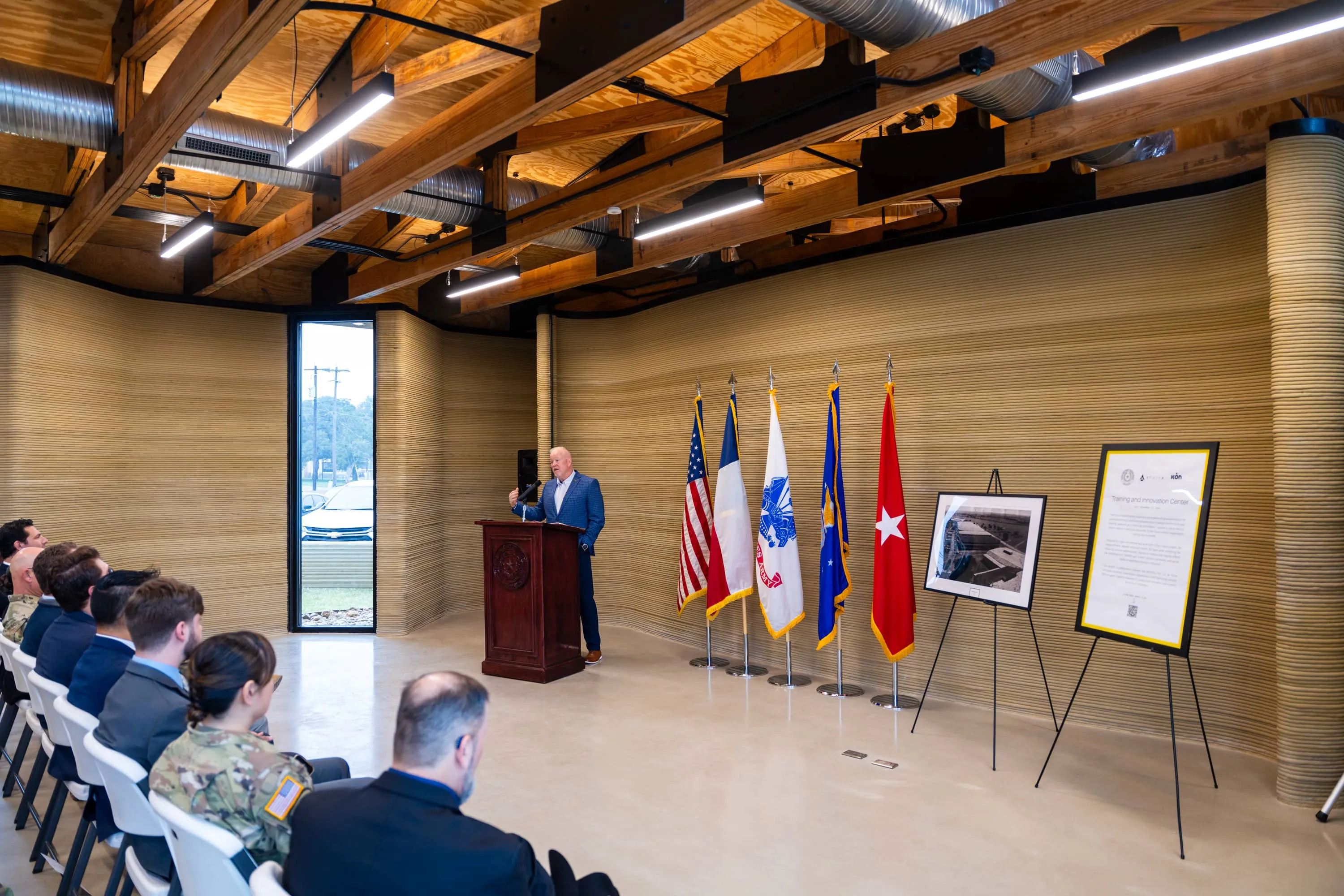 The Innovation Center will be part of TMD’s Joint Force Headquarters and will enable collaboration and planning with TMD and external partners on future innovation and modernization efforts. Over the past few months, TMD Service Members along with ICON designed and constructed the 3D-printed Innovation Center.