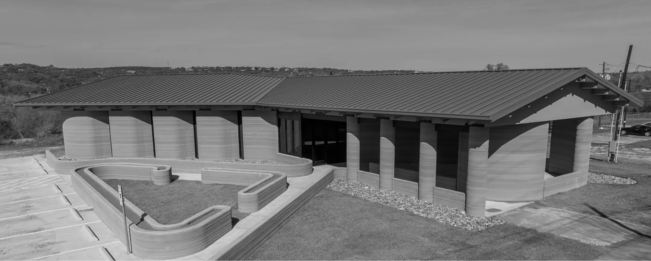 The ICON wall system combines advanced 3D-printed concrete construction with high-performance spray